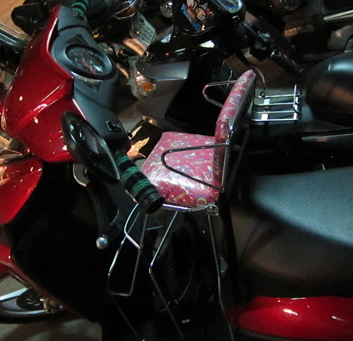 I can pick you up a baby seat if you have a scooter. And they dont need helmets.