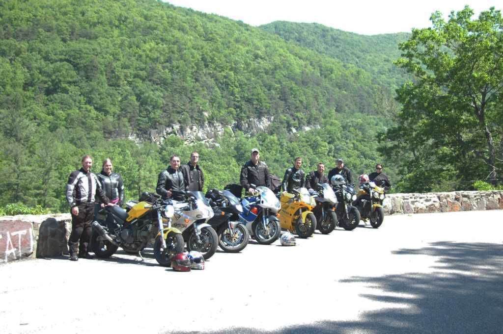 Out motley crew of 3 Duss, 3 Triumphs, 1 Aprilia, and 1 Suzuki