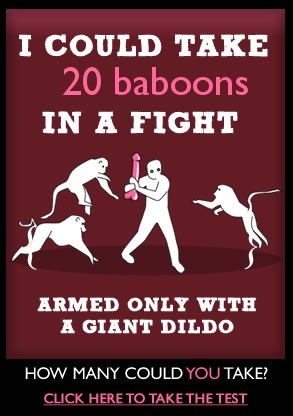 however, i don't olan on bringing a dildo to a baboon fight. i'm bringing either a bladed weapon or a bat.