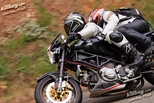 Most people make the mistake of hanging off less in the rain when it's actually counterproductive to do so. Hanging off less will reduce your contact patch, which in turn reduces available grip. Reduced grip in a reduced friction environment spells s-u-f-f-e-r-i-n-g.